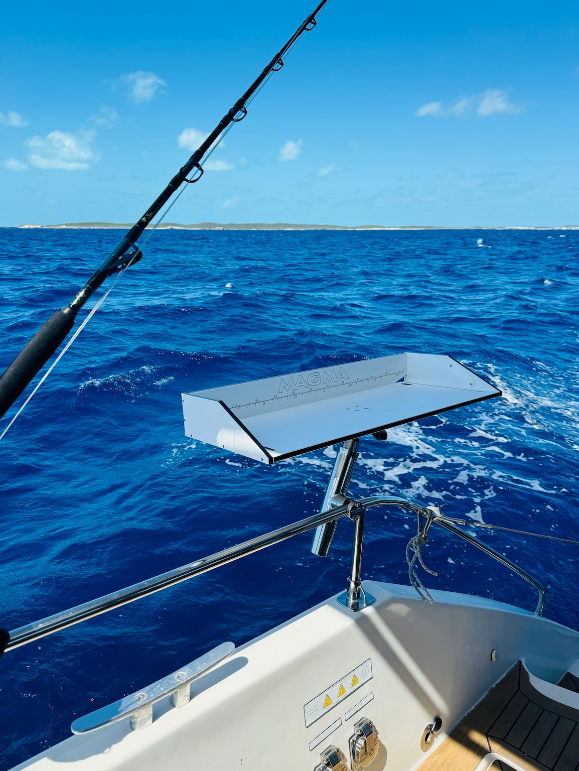 Magma’s original Bait/Fillet Mate tables include an engraved logo and ruler that shows the black core for a clean look while increasing visibility when measuring the days catch. Not just designed for bait preparation or fish cleaning, these tables are FDA approved for food preparation or service. Constructed with commercial quality UV stabilized compression molded high-density polyethylene that is virtually indestructible, practical, and more sanitary than wood fillet tables. These tables will not crack, peel, mildew, absorb bacteria or fish odors, allowing you virtually maintenance free use. Equipped with (2) knife holsters, receptacle for pliers, rounded edges / corners for safety, and side channels with a slotted table back that permits drainage from the work surface while keeping your deck clean of scales and residue when preparing, cleaning, or filleting. These tables are supplied with the LeveLock® all-angle fish rod holder mount, which is our most popular mount and has been manufactured using heat-treated Stainless Steel and hard-anodized aluminum for superior corrosion resistance. It’s quick release cam-action design allows convenient all-angle adjustment when in use or simply folds flat for storage. The 1-1/2” (38 mm) 304 Stainless Steel tube has 8 different rotation positions and fits most cross-pin type rod holders. Available in 20" and 31".