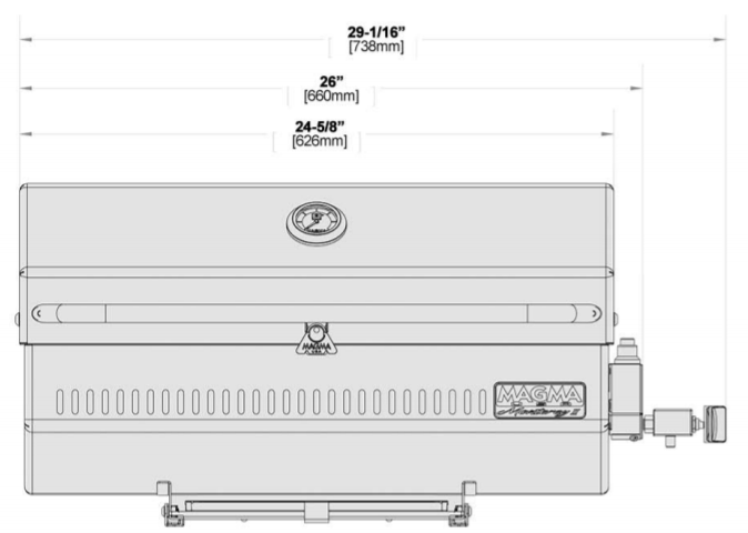 Your grilling experience will be greatly enhanced with Magma's completely redesigned Monterey II Classic Gas Grill. The versatile, portable, and finely crafted grill is a perfect addition for feeding a large crew. New features include: an elegant exterior design, a completely redesigned combustion system that keeps the grill lit even in heavy winds, a hermetically sealed thermometer and a dependable electronic ignition system, powered by a single βAAAβ battery (included). Constructed entirely of 304 mirror-polished stainless steel to withstand even the harshest environments. The primary and secondary grilling surfaces give you the option of searing, slow cooking, or warming. Equipped with fold-away table top legs for go-anywhere use. Its fuel efficient swiveling control valve, attaches to pre regulated, low pressure propane (LPG) fuel systems or can be adapted for use with 1lb. disposable propane fuel canisters or natural gas (CNG) fuel systems.Β Magma offers the largest selectionΒ of mounting options (sold separately) to customize the grill for your needs.Β Β Heavy Duty mounting hardware is recommended. Serving tray not included.