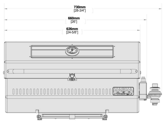Perfect your grilling skills with Magma's completely redesigned Monterey II Infrared Gas Grill. The perfect addition for feeding a large crew, this versatile, portable, finely crafted grill is always ready for action. New features include: an elegant exterior design, a completely redesigned combustion system that keeps the grill lit even in heavy winds, a hermetically sealed thermometer, a dependable electronic ignition system, powered by a single βAAAβ battery (included), and an ultra high-temp glass viewing window. Anti-Flare Infrared technology produces intense, evenly distributed heat, eliminating Flare-Up and immediately emulsifies drippings giving your meal a great smoky flavor. The primary and secondary grilling surfaces give you the option of searing, slow cooking, or warming. Constructed entirely of 304 mirror-polished stainless steel to withstand even the harshest environments. Equipped with fold-away table top legs for go-anywhere use. The swiveling control valve/regulator, designed to use standard disposable propane/butane mix Camping Gaz (CV270, CV270 Plus, CV470, or CV470 Plus) fuel canisters, allows for quick, safe fuel canister exchanges or easily adapt grill to existing on-board low pressure propane/butane or natural gas (CNG) fuel systems. Magma offers the largest selectionΒ of mounting options (sold separately) to customize the grill for your needs.Β Β Heavy Duty mounting hardware is recommended.Β Β