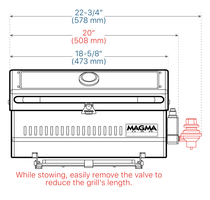 Magma's Newport II Infrared Gas Grill is a perfect addition for that perfect day on the water. New features include: an elegant exterior design, a completely redesigned combustion system that keeps the grill lit even in heavy winds, a hermetically sealed thermometer, a dependable electronic ignition system, powered by a single “AAA” battery (included), and an ultra high-temp glass viewing window. Anti-Flare Infrared technology produces intense, evenly distributed heat, eliminating Flare-Up and immediately emulsifies drippings giving your meal a great smoky flavor. Constructed entirely of 304 mirror-polished stainless steel to withstand even the harshest environments. Equipped with fold-away table top legs for go-anywhere use. The swiveling control valve/regulator, designed to use 1lb. disposable propane fuel canisters, allows for quick, safe fuel canister exchanges or easily adapt grill to existing on-board low pressure propane (LPG) or natural gas (CNG) fuel systems. Magma offers the largest selection of mounting options (sold separately) to customize the grill for your needs. Serving tray and fuel canister not included.