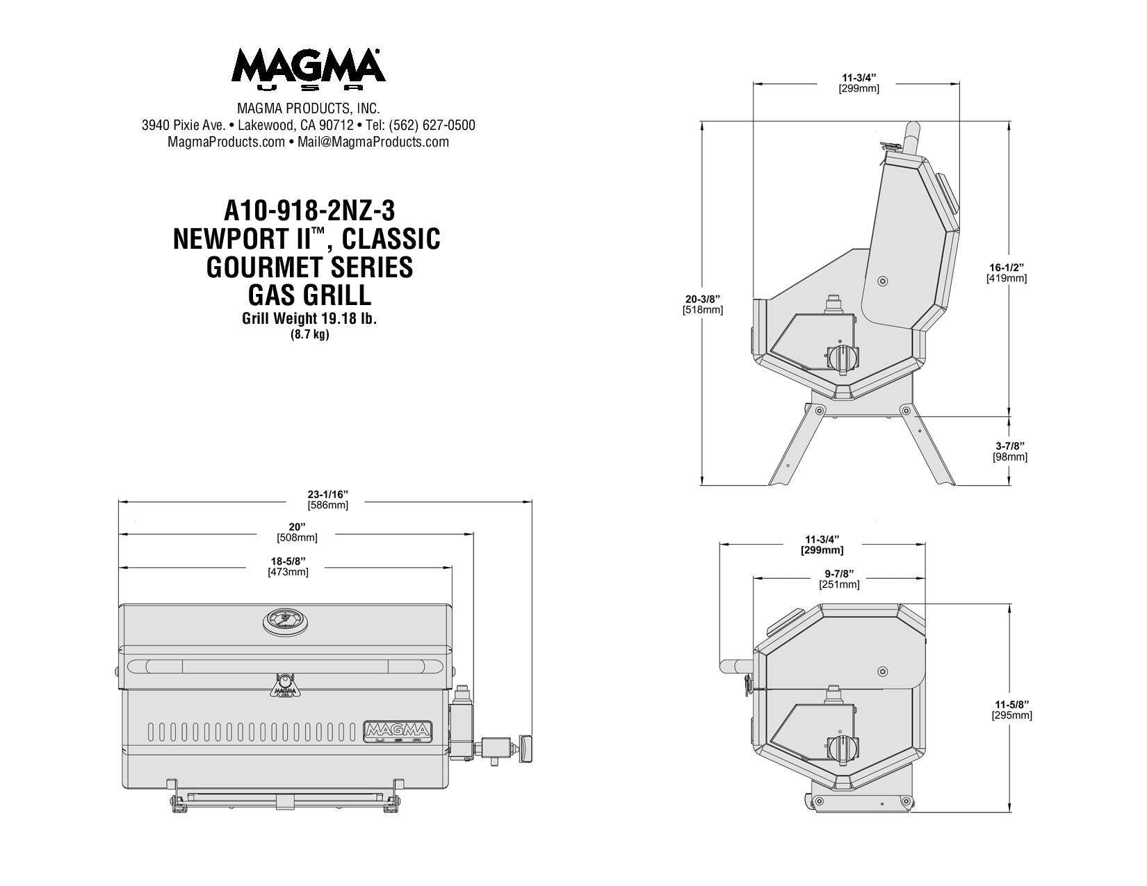 Magma's Newport II Infrared Gas Grill is a perfect addition for that perfect day on the water. New features include: an elegant exterior design, a completely redesigned combustion system that keeps the grill lit even in heavy winds, a hermetically sealed thermometer, a dependable electronic ignition system, powered by a single “AAA” battery (included), and an ultra high-temp glass viewing window. Anti-Flare Infrared technology produces intense, evenly distributed heat, eliminating Flare-Up and immediately emulsifies drippings giving your meal a great smoky flavor. Constructed entirely of 304 mirror-polished stainless steel to withstand even the harshest environments. Equipped with fold-away table top legs for go-anywhere use. Its fuel efficient swiveling control valve, attaches to pre regulated, low pressure propane (LPG) fuel systems or can be adapted for use with 1lb. disposable propane fuel canisters or natural gas (CNG) fuel systems. Magma offers the largest selection of mounting options (sold separately) to customize the grill for your needs. Serving tray not included.