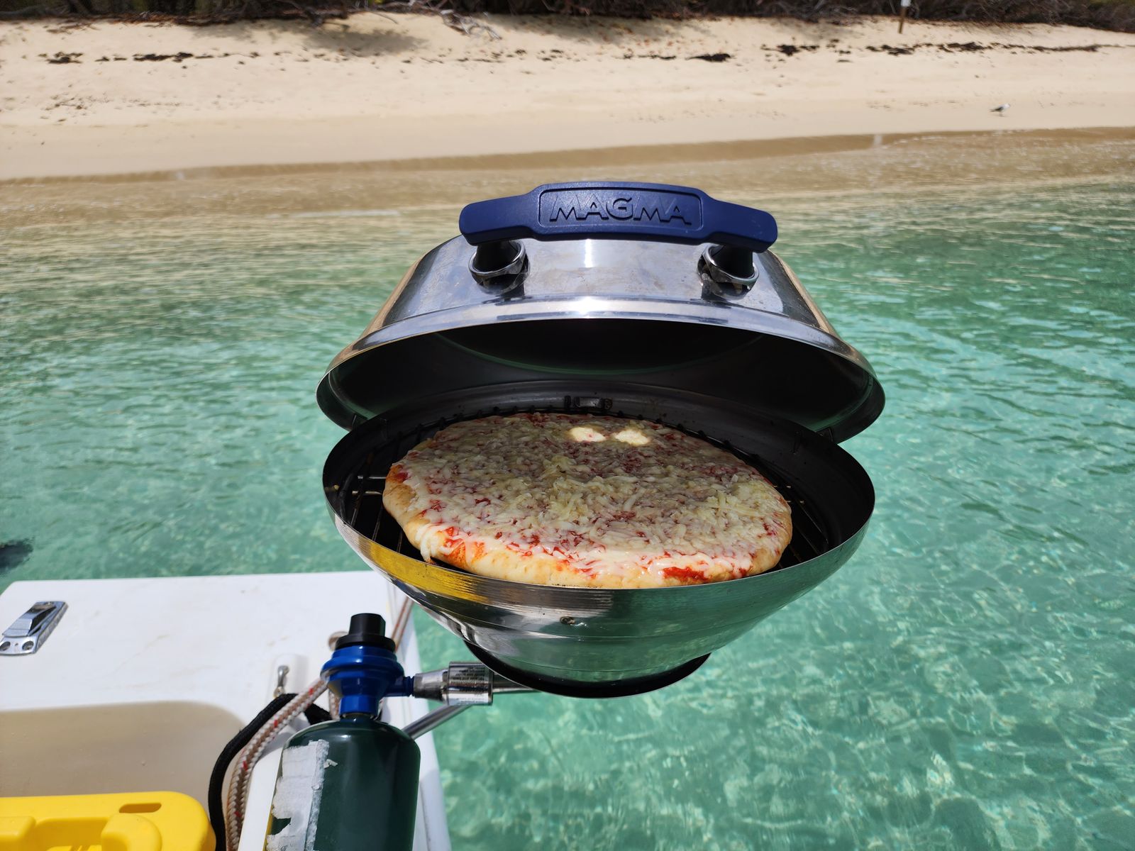 This grill was designed for economy without sacrificing functionality. Made of 100% 304 mirror polished stainless steel, it will give you the safety, durability and performance required of a marine grill. It uses our time-tested, highly efficient radiant plate heat distribution system in conjunction with convection heating technology to achieve hot, even temperatures while using a minimum of fuel. It comes to temperature very quickly and is great for searing steaks or just grilling up some burgers and dogs. The patented swiveling turbo venturi tube allows you to adjust the control valve inboard, outboard, left or right wherever it is most convenient to you. The turbo venturi tube in combination with the newly designed burner virtually eliminates blow-outs. The control valve/regulator uses standard, disposable 1lb. propane fuel canisters, allows for quick, safe fuel canister exchanges or easily adapt to existing on-board LPG (propane) or CNG (natural gas) fuel systems. The grill quickly disassembles without tools for easy clean-up. Magma offers the largest section of mounting options (sold separately) to customize the grill for your needs, fuel canister (not included). Serving shelf sold separately.