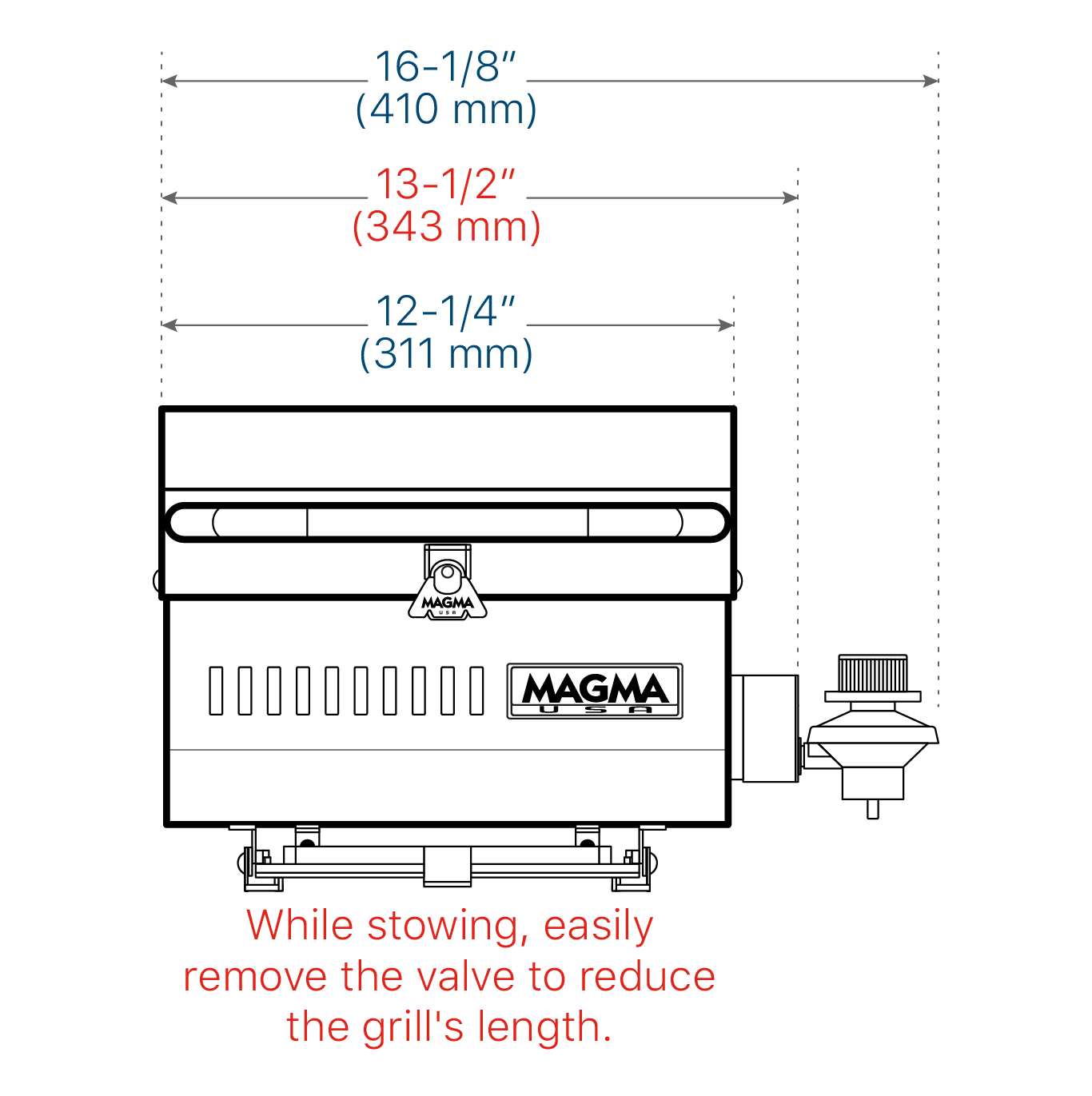 The compact TrailMate is perfect for any small crew or gathering. With its fold-away legs this grill has the go-anywhere capability to enhance your outdoor activities on-board or on-shore. Engineered to the same quality standard as our larger grills yet priced for the boater who doesn’t want to substitute quality for cost. This 9” x 12” grill has 108 Sq. In. of grilling area, is constructed entirely of 304 mirror polished marine grade stainless steel, and is wind tested for even heat distribution for years of dependable service. The swiveling control valve/regulator, designed to use 1lb. disposable propane fuel canisters, allows for quick, safe fuel canister exchanges or easily adapt grill to existing on-board low pressure propane (LPG) or natural gas (CNG) fuel systems. Model uses single mount mounting hardware only. Magma offers the largest selection of mounting options (sold separately) to customize the grill for your needs. Fuel canister and serving tray not included.